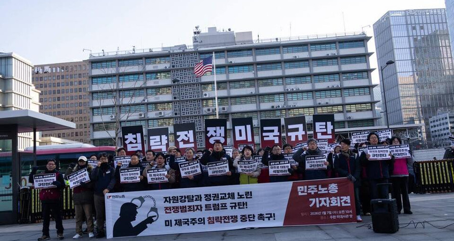 KCTU held a press conference calls for an end to US imperialism He also strongly criticized, “This is a situation where it would not be strange at all if it led to war. They are openly threatening other countries besides Venezuela. Imperialist invasion aimed at plundering oil and resources is raising its head again. The one who should be arrested is none other than Trump.” Regarding the Lee Jae-myung administration, President YANG also urged, “They must clearly express condemnation and opposition to Trump. They must clearly understand that the only thing to be gained by watching and prostrating oneself is humiliation.” The KCTU then declared that it would work with the people and workers worldwide to rectify America’s acts of aggression. Representatives from affiliated organizations spoke in succession. Song Geum-hee, First Vice-president of the Korean Health and Medical Workers’ Union, said, “They have fully revealed their nature of the law of the jungle that destroys world order. They are simultaneously targeting not only Venezuela but several countries. We must reconsider and judge whether it is right to maintain an alliance with the United States, which violates international law and commits war crimes through invasion and kidnapping.” Kim Gyu-jin, Vice-president of the Korean Metal Workers’ Union, stated, “This has shown us that the United States is not ‘Captain America’ defending democracy, but merely a street gang leader searching students’ pockets in back alleys. It is an incident that clearly demonstrates that if it benefits imperialism and monopoly capital, the citizens of other countries are treated as merely a handful of cumbersome obstacles.” Kim Jin-eok, Chairperson of the KCTU Seoul Regional Council, emphasized, “If we condone America’s actions, the international order will fall into the abyss of barbarism. Those sacrificed in imperialist wars of aggression have always been working people, women, children, and the vulnerable. We must stop this. Trade unions and working people worldwide must fight together in solidarity.” Through the press statement, we declared, “The KCTU will firmly maintain international solidarity with Venezuelan workers and people and join the struggle of workers worldwide against imperialist war and invasion.“ https://nodong.org/english/ Back |